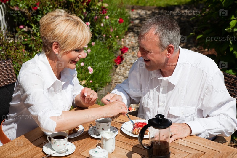 Пожилая пара за завтраком