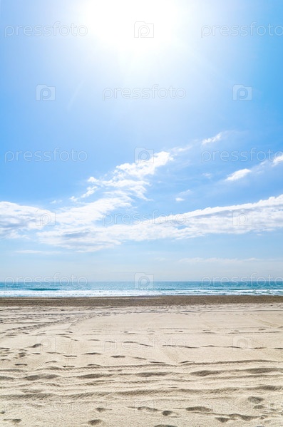 Следы на пустом солнечном пляже