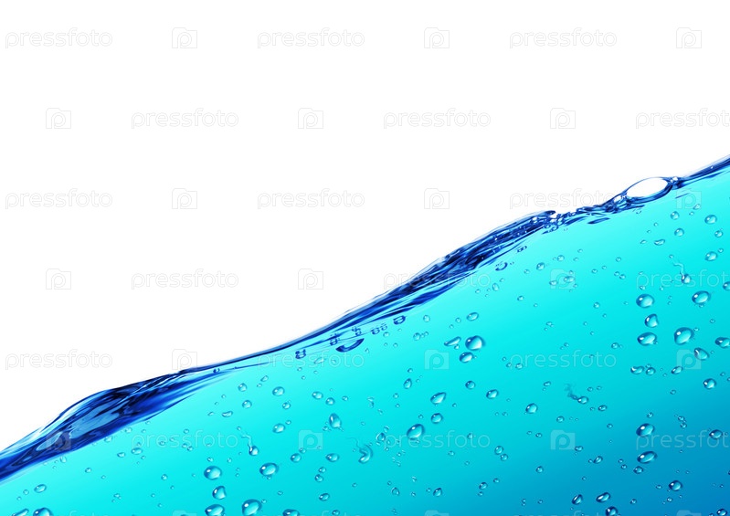 Голубая вода и капли воды на белом фоне