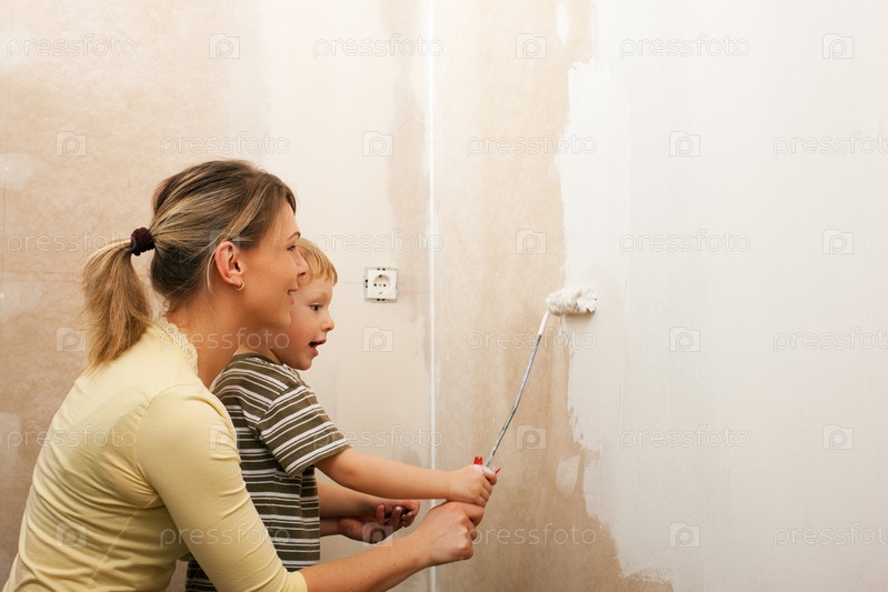 Мама и сын делают ремонт