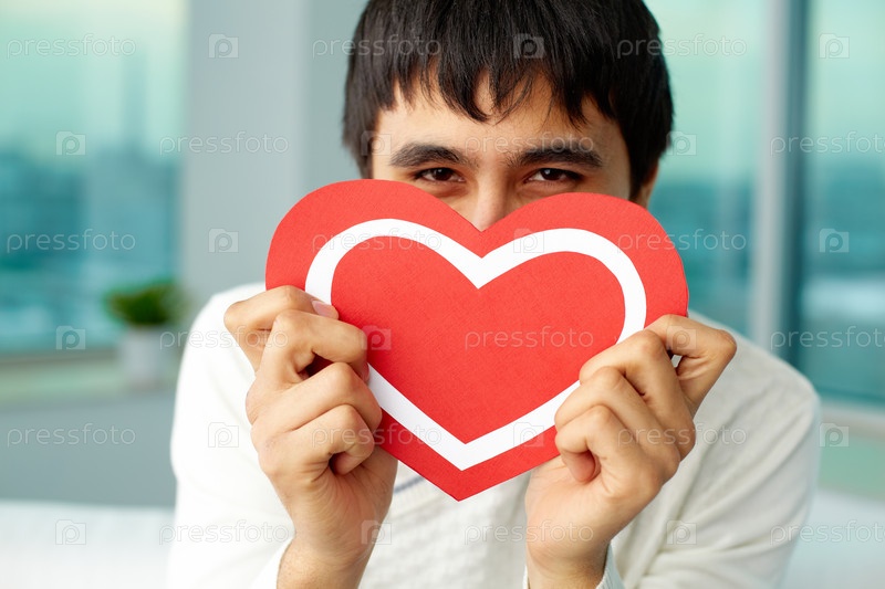 Молодой мужчина с картонным сердцем