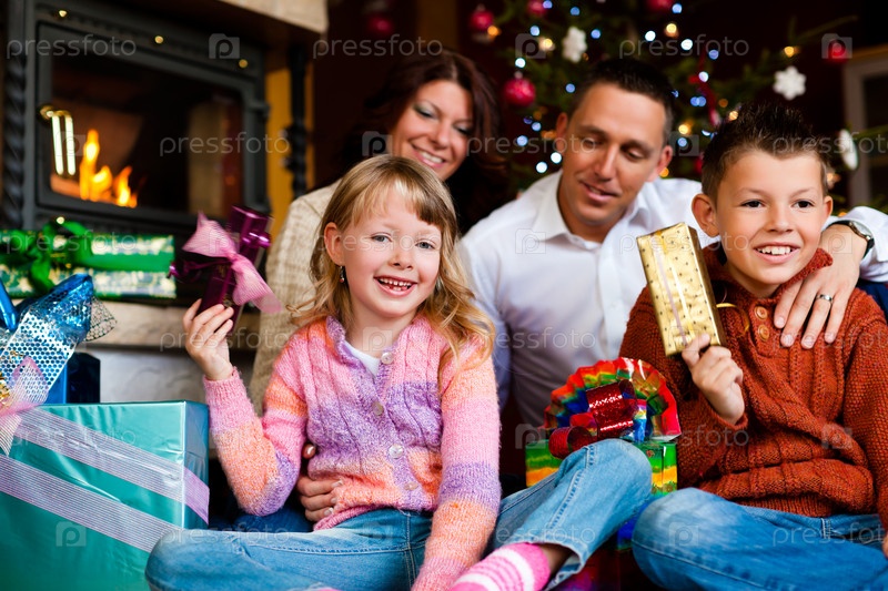 Семья с рождественскими подарками
