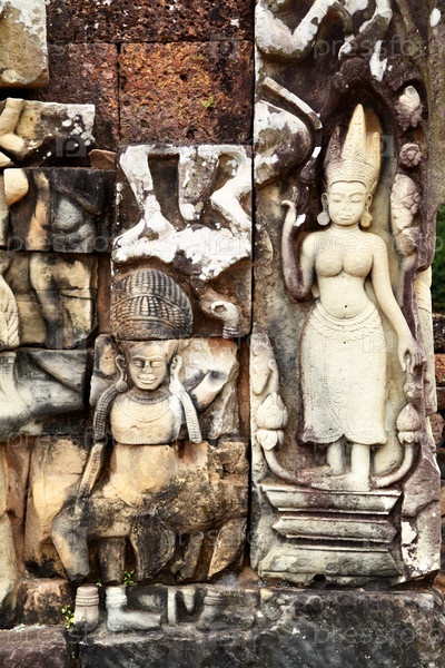 Кхмерская каменная резьба в городе Ангкор-Тхом, Камбоджа