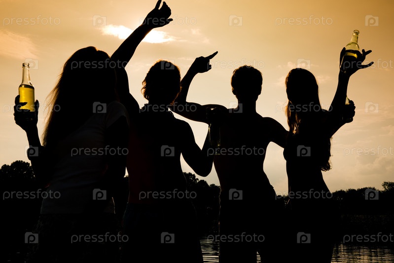 Силуэты молодых людей на открытом воздухе