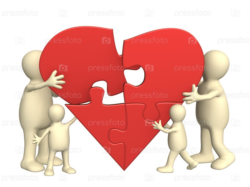 Семья, собирающая сердце из кусочков головоломки