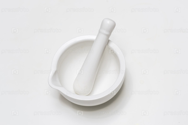 Белая керамическая ступка и пестик
