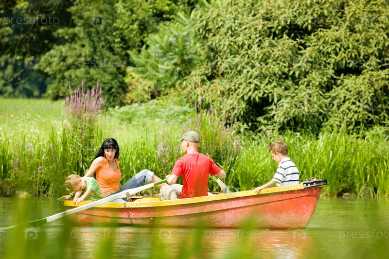 Семья в лодке на озере