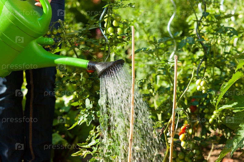Девушка поливает грядку