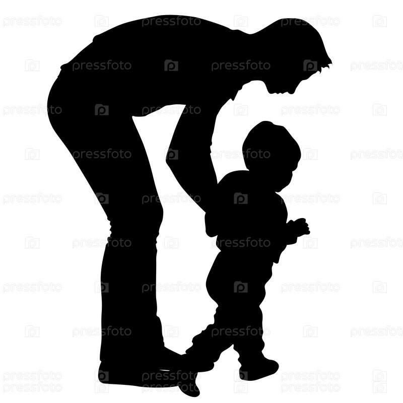 Черные силуэты папы и ребенка