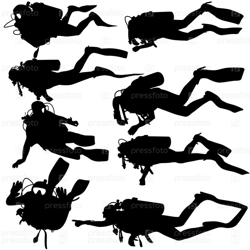Черный силуэт аквалангистов