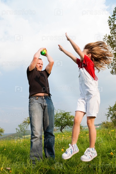 Отец играет с дочерью на природе