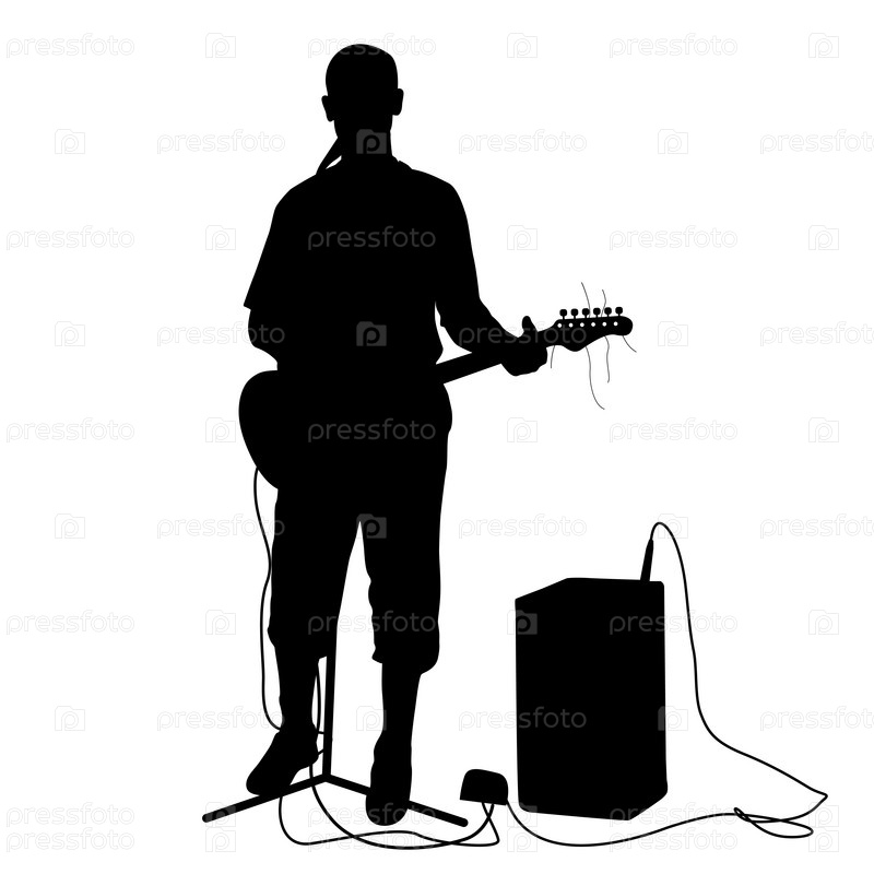 Силуэт музыкант играет на гитаре