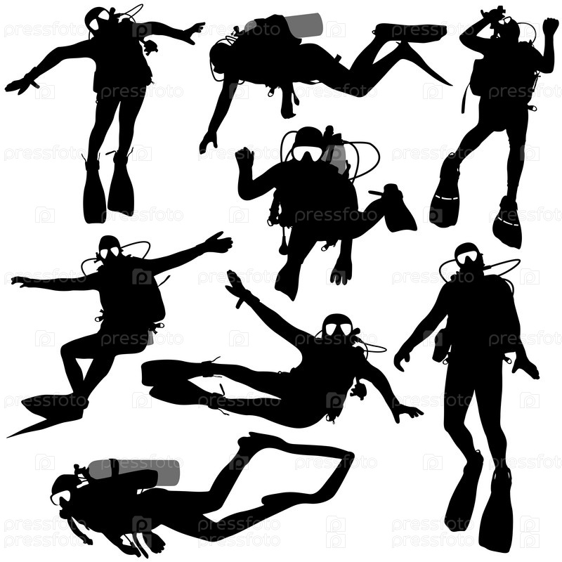 Черный силуэт аквалангистов