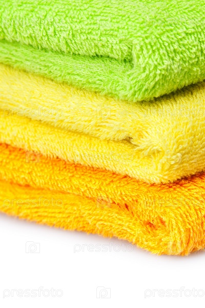 Стопка разноцветных махровых полотенец