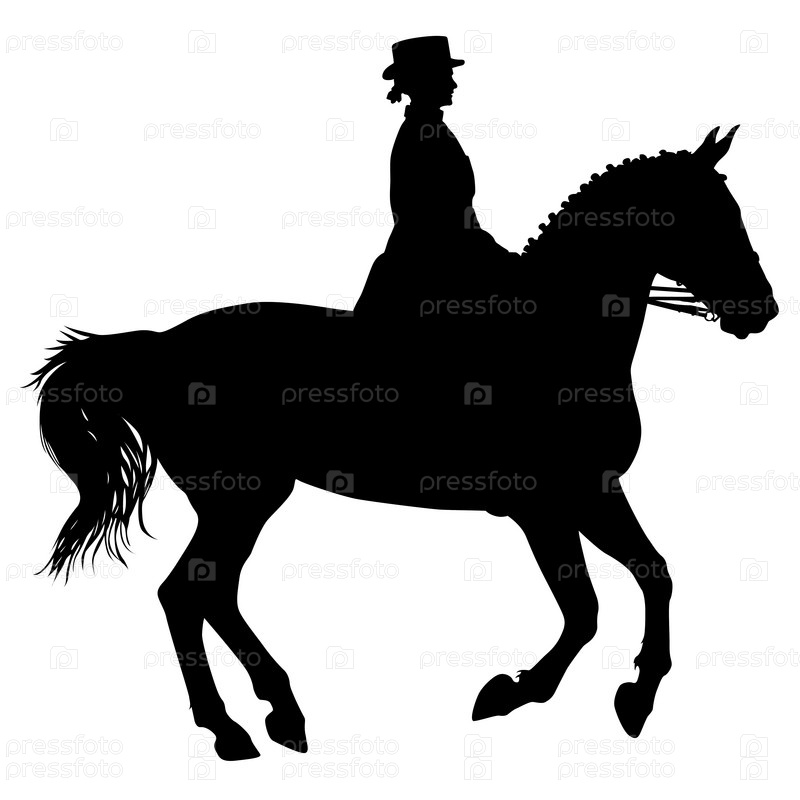 Силуэт лошадь и жокей-женщина