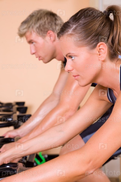 Молодые люди на велотренажерах