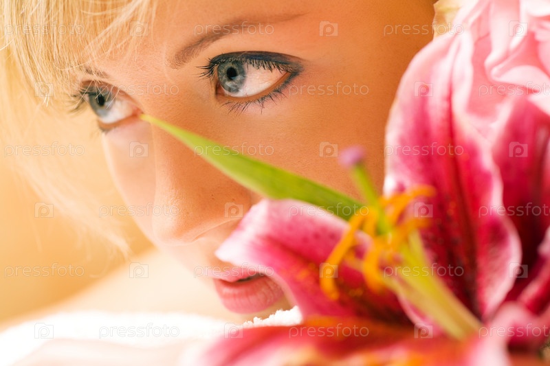 Портрет девушки с цветами, крупный план