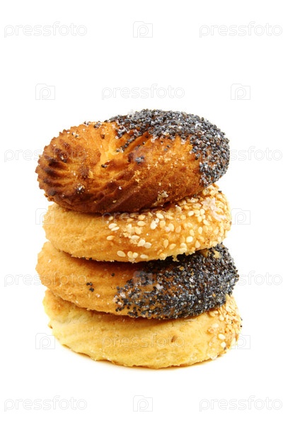 Печенье с маком и кунжутом, изолированное на белом фоне