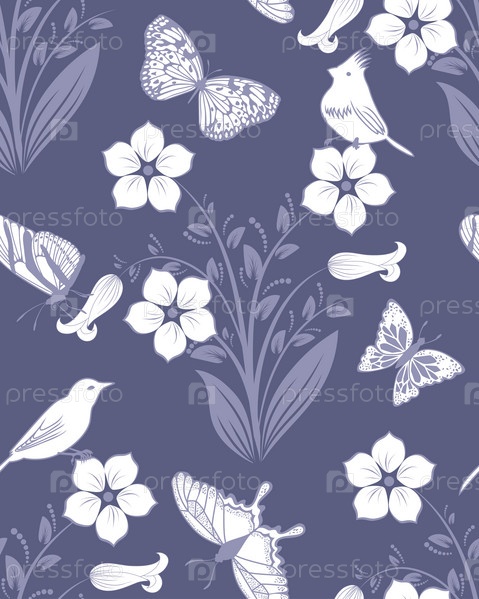 Бесшовный шаблон с цветами и бабочками