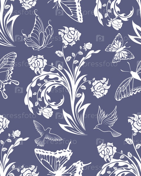Бесшовный шаблон с цветами и бабочками