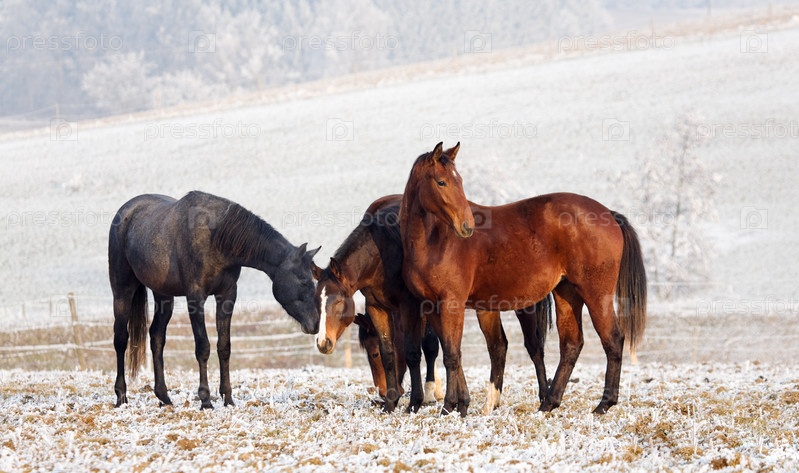 Лошади на лугу зимой
