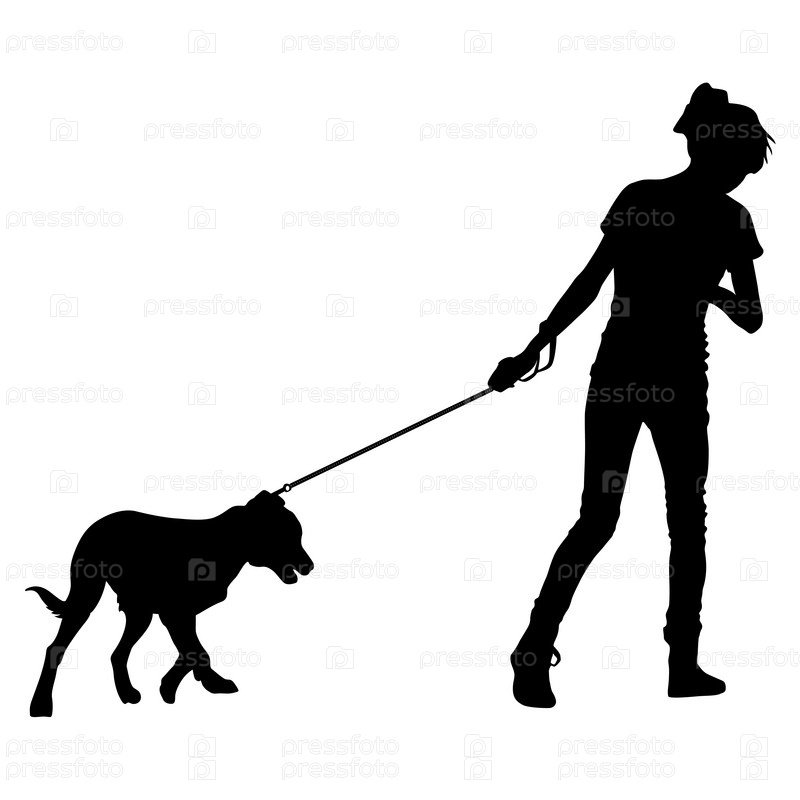 Силуэт женщина с собакой