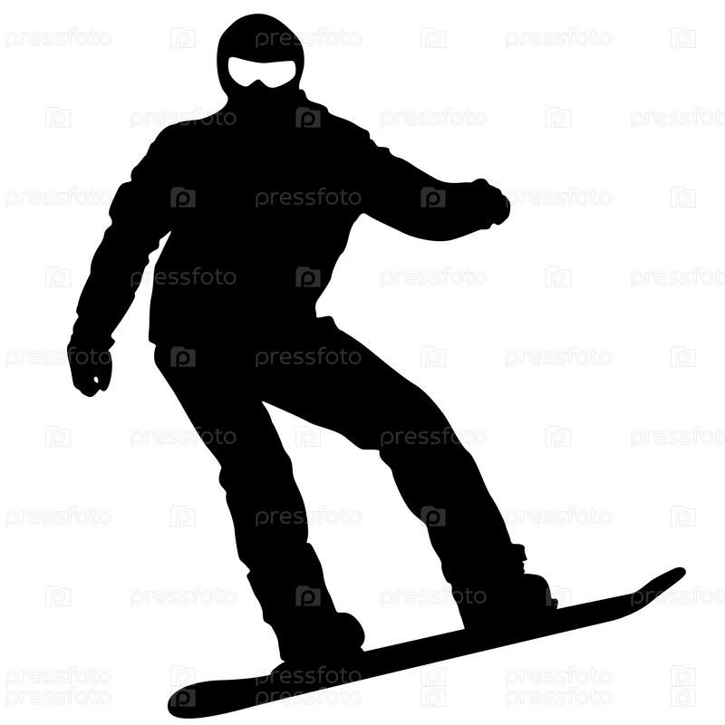 Черные силуэты сноубордистов