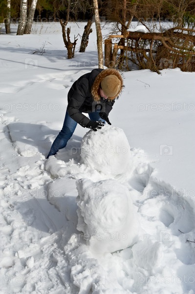 Девушка делает снеговика
