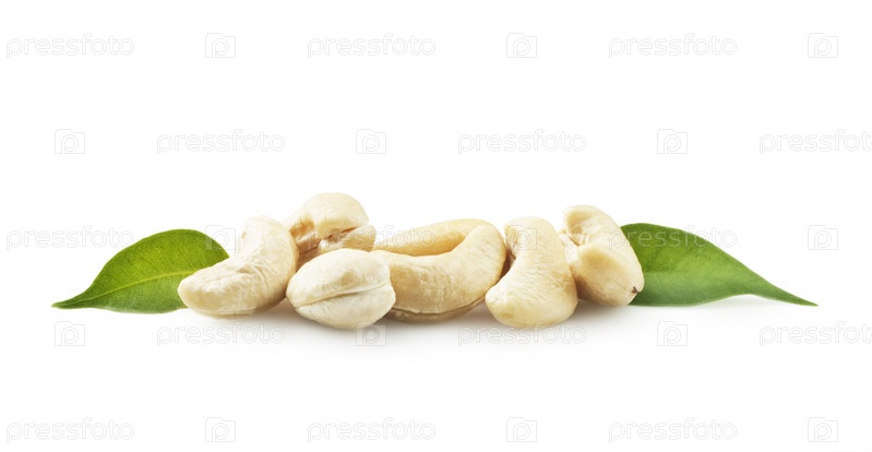 Орехи кешью и зеленые листья