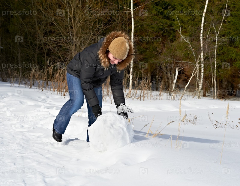 Привлекательная девушка делает снеговика