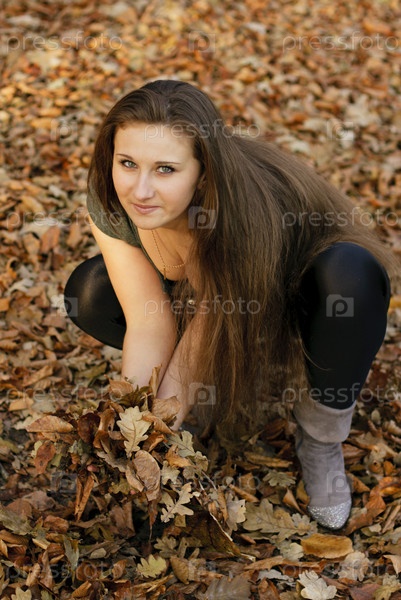Девушка с осенними листьями в руках