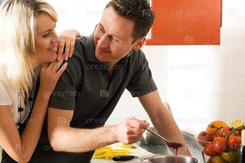 Красивая пара готовит пищу