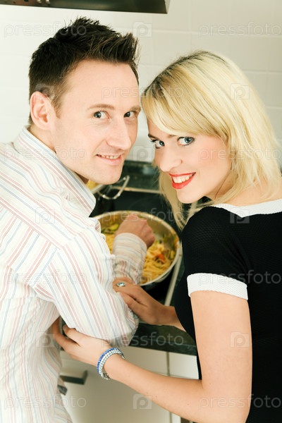 Семейная пара готовит пасту