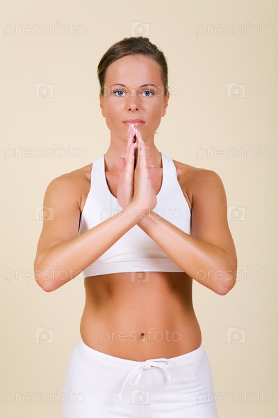 Девушка сложила руки в приветственном жесте