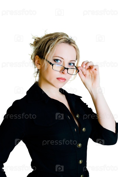 Привлекательная деловая женщина в очках на белом фоне