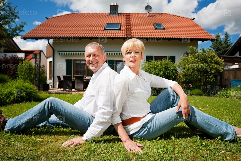 Счастливая семейная пара возле дома