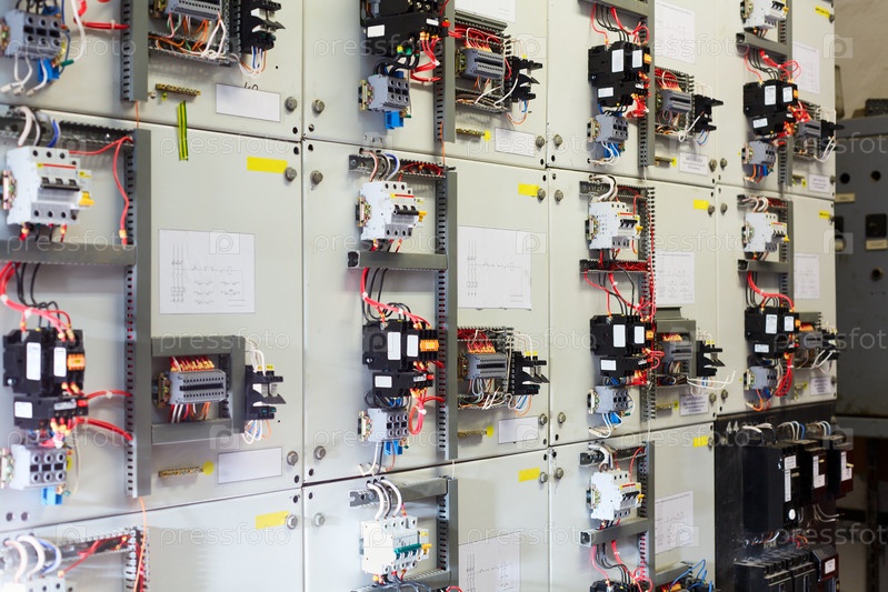 Электрическая панель со множеством автоматики, приборов и выключателей