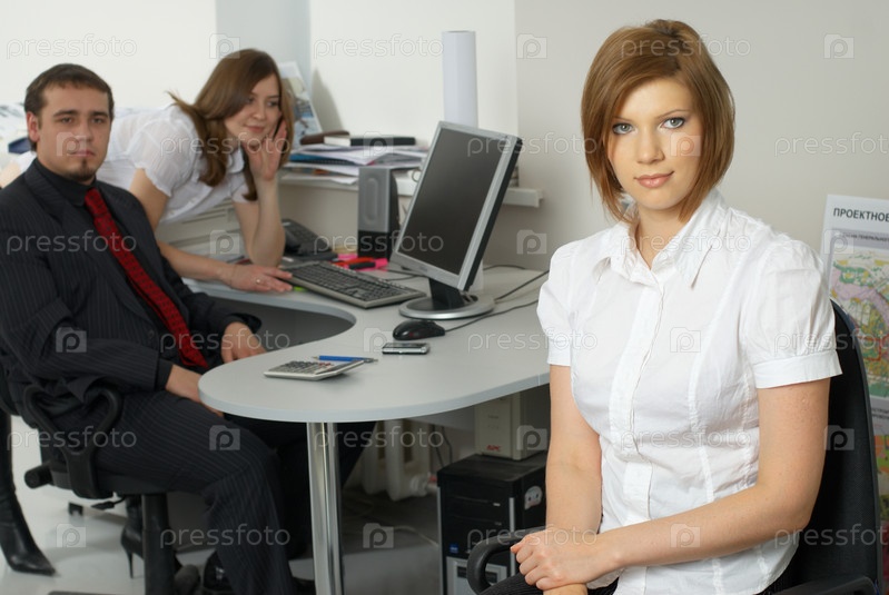 Деловая леди в офисе с коллегами