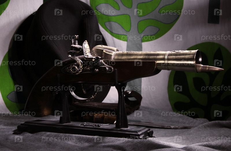 Старинный пистолет на подставке