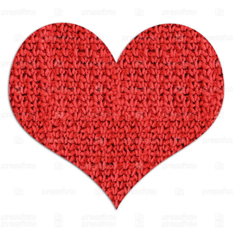 Вязаное сердце на белом фоне