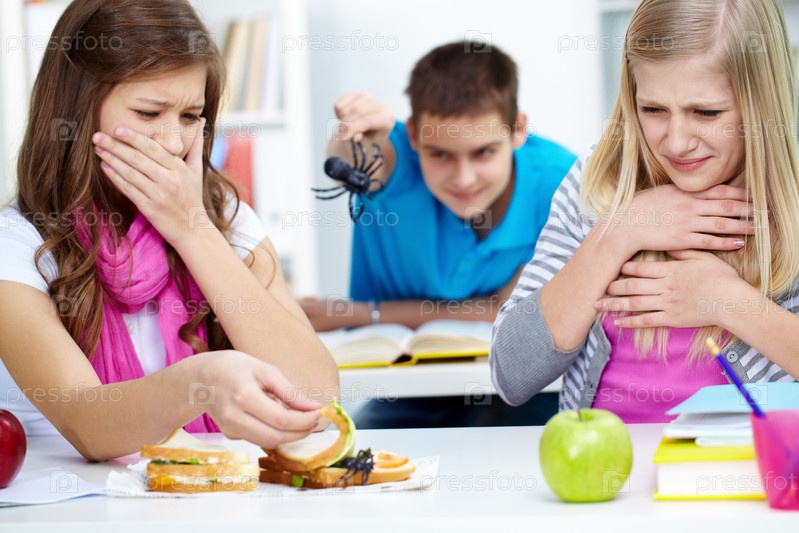 Подросток пугает одноклассниц игрушечным пауком