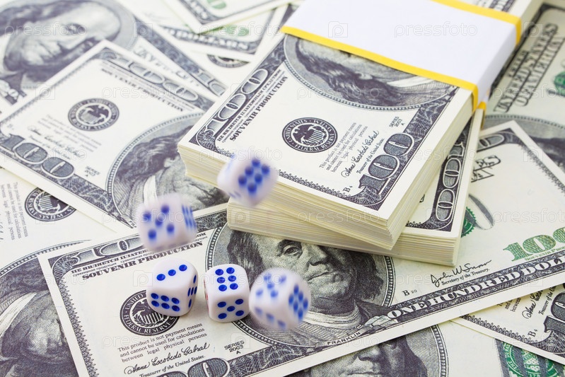 Игральные кости на фоне долларов