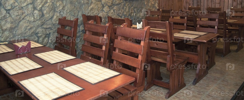 Деревянные обеденные столики в кафе