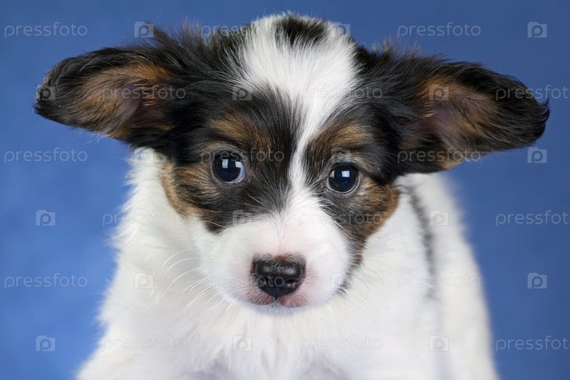 Маленький щенок на синем фоне