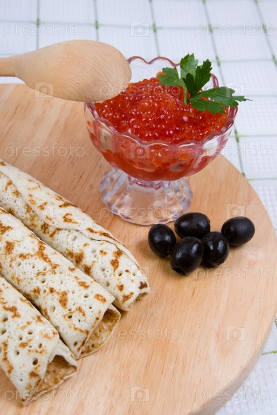 Блины с красной икрой, празднование Масленицы