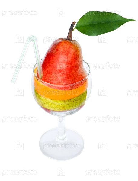 Фруктовый коктейль с трубочкой в бокале, изолированный на белом фоне