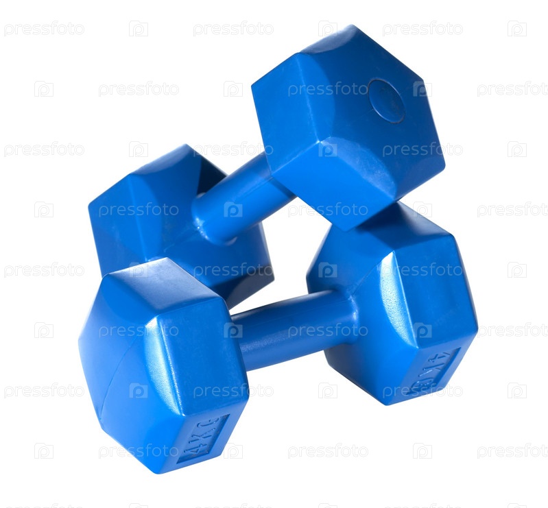 Синие гантели, изолированные на белом фоне