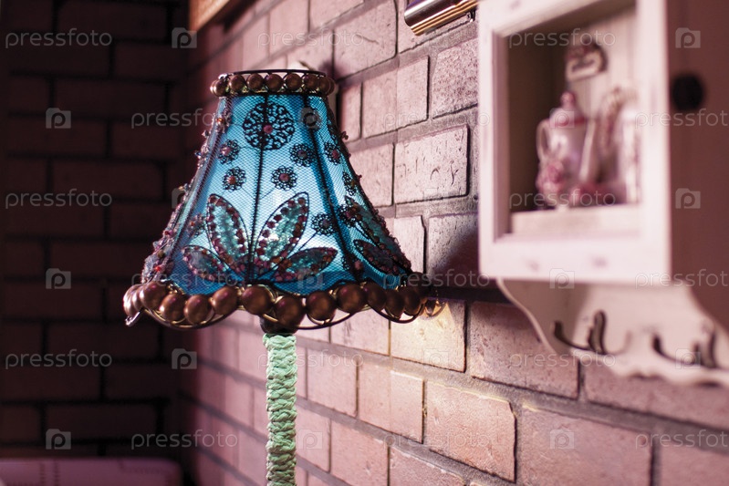 Светильник с абажуром на фоне кирпичной стены