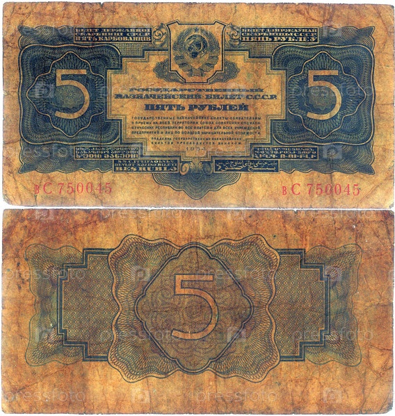 Старая российская банкнота в пять рублей