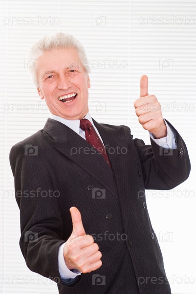 Улыбающийся пожилой бизнесмен, показывающий жест ОК